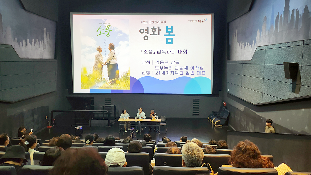 ์๋ ์ ์ด์ด '์ฌํ์ ํ๋์กฐํฉ ๋์ฐ๋๋ฆฌ'์ ํจ๊ป ๋ ๋ฒ์งธ '์ํ ๋ด' ์์ํ๋ฅผ ์งํํ์ต๋๋ค. ์ธ์์ ๋ง์ง๋ง์ ํฅํด๊ฐ๋ ๋ ์น๊ตฌ์ ์ด์ผ๊ธฐ, ์ํ '์ํ'์ ์์ํ๋๋ฐ ์ฐธ์ํ์ ๋ถ๋ค์ด ์์๋ณดํธ์ฌ, ์ฌํ๋ณต์ง์ฌ ๋ฑ ๋๋ด ํ์ฅ์ ๊ณ์ ์ ๊ทธ๋ฐ์ง ๋์ฑ ๊ณต๊ฐํ๋ฉฐ ์ํ๋ฅผ ๋ณด์ จ์ต๋๋ค.